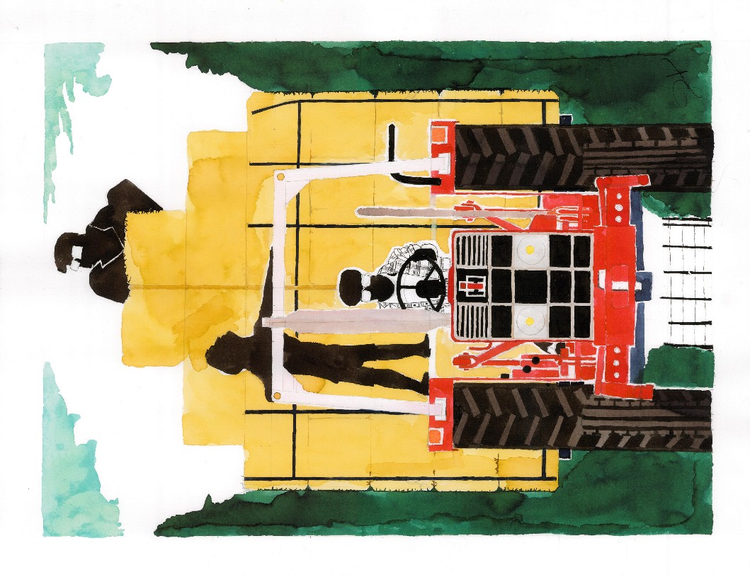 Ce tableau représente une anecdote que j’ai de Maurice. Enfant, l’été mon père lui demandais un coup de main pour remiser le foin ou la paille conditionnés en bottes de moyenne densité. Maurice faisait mal les charretées et mon père le sachant, après avoir câblé ces dernières, priait Maurice de rester dessus, il lui mettait ainsi la pression pour qu’il veille à bien faire celles-ci (sachant qu’au retour il resterai dessus). Moi, mon père me réquisitionnait pour conduire le tracteur … dans le champ et pour regarder si Maurice était toujours sur la charretée au retour. Ce tableau est un hommage à une certaine jeunesse que j’avais mais surtout à Maurice THETIOT (05/09/1922 23/02/1993), à mon père Marcel ROBERT (06/01/1930-06/04/2025) et à tous ceux que j’ai eu eut le plaisir de connaitre durant cet labeur : Moïse, Clément, Jean-Claude, Joseph, André, Francis, Christophe, Sébastien, et d’autres prénoms oubliés avec le temps. Ce tableau peut être associé aux tableaux «L’ensilage », « La piquerie », «La batterie », « Gaspard », de l’Expo XIII EBTG. |