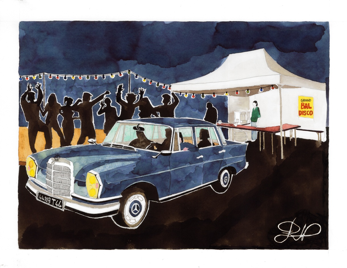 Des copains de Treillières avaient inverti dans une Mercedes-Benz pour s’offrir un moyen de locomotion atypique le week-end. Effet garanti sur moi qui me vaut de leur rendre hommage à travers ce tableau. Le titre est un souhait de revivre cet épisode.