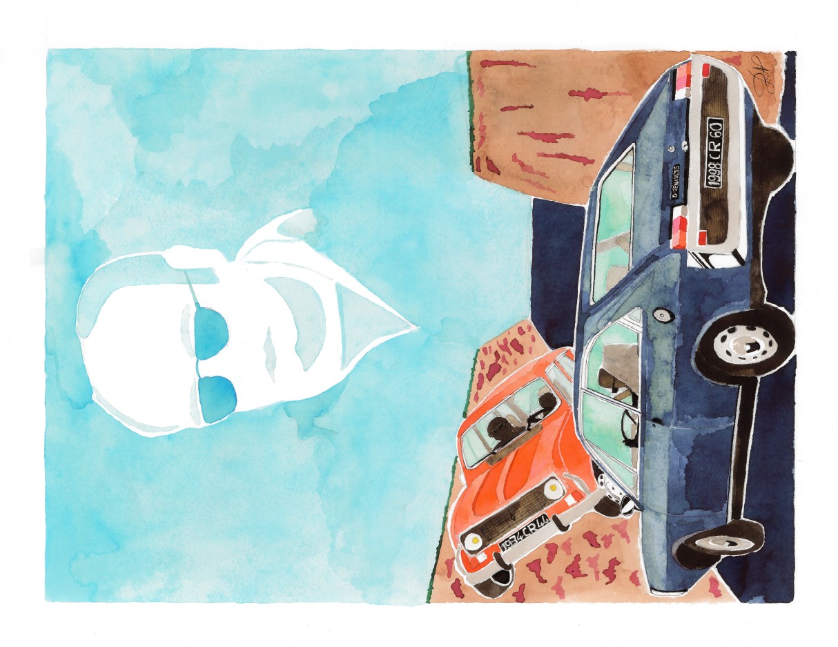 Ce tableau rassemble une anecdote personnelle que j’ai de lui et une voiture associée à son image, cette R15 bleue.