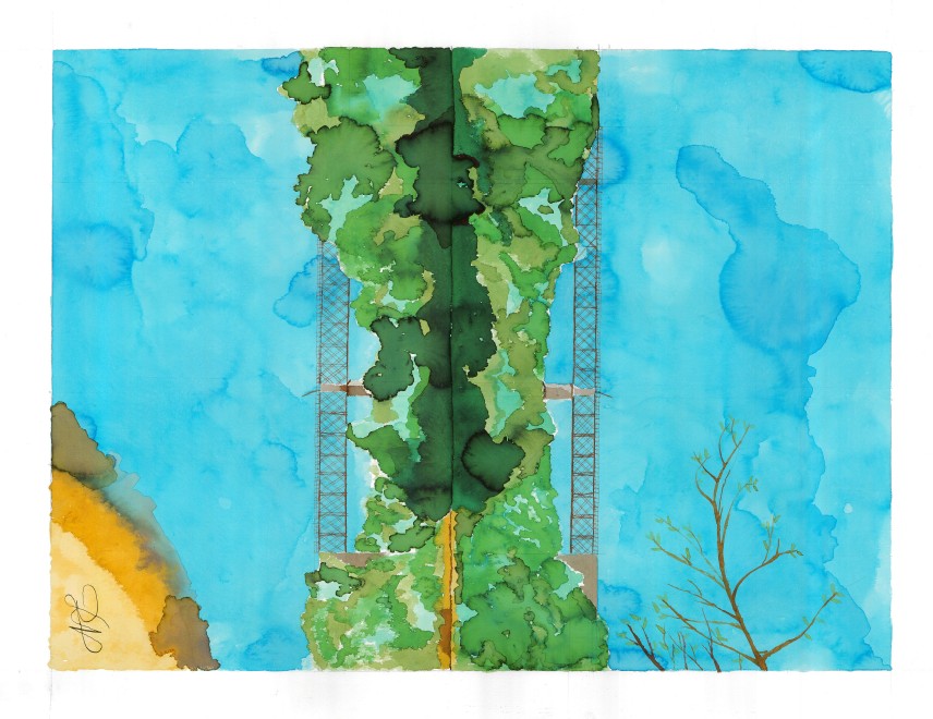 Ce tableau représente un lieu emblématique d’un village pour les pêcheurs, comme pour les randonneurs. Cet ouvrage a été construit par la société de Gustave Eiffel à Villavieja de Yeltes (Espagne) pour répondre à une contrainte ferroviaire (enjamber une rivière). Abandonné depuis des années, soumis aux aléas du climat, il reste aujourd’hui le témoin d’une époque révolue. (peut-être regrettée), jusqu’à quand ?
