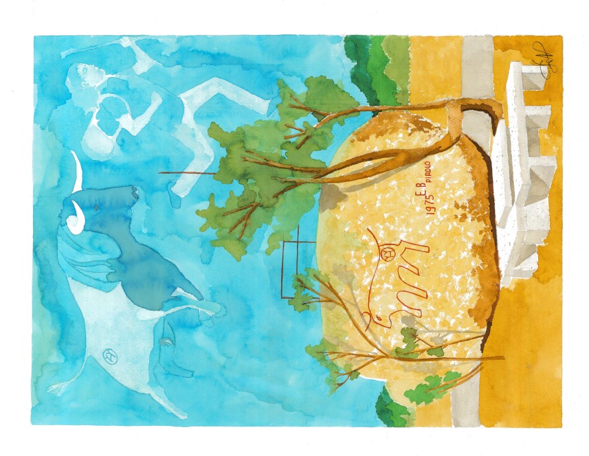Ce tableau est là, pour rappeler l’existence d’un rocher devenu célèbre non pas parce qu’il est un vestige de la dernière époque glacière, mais pour le salut qu’il a offert à un berger venu s’y refugier pour se soustraire au sort funeste que lui réservait un taureau échappé d’un troupeau. Son nom a été attribué à ce rocher : « El Pirolo », c’est devenu une curiosité attirant parfois de jeunes couples transpirant parfois à indirectement, s’essayer à donner la vie près d’un rocher, qui a sauvé une vie.